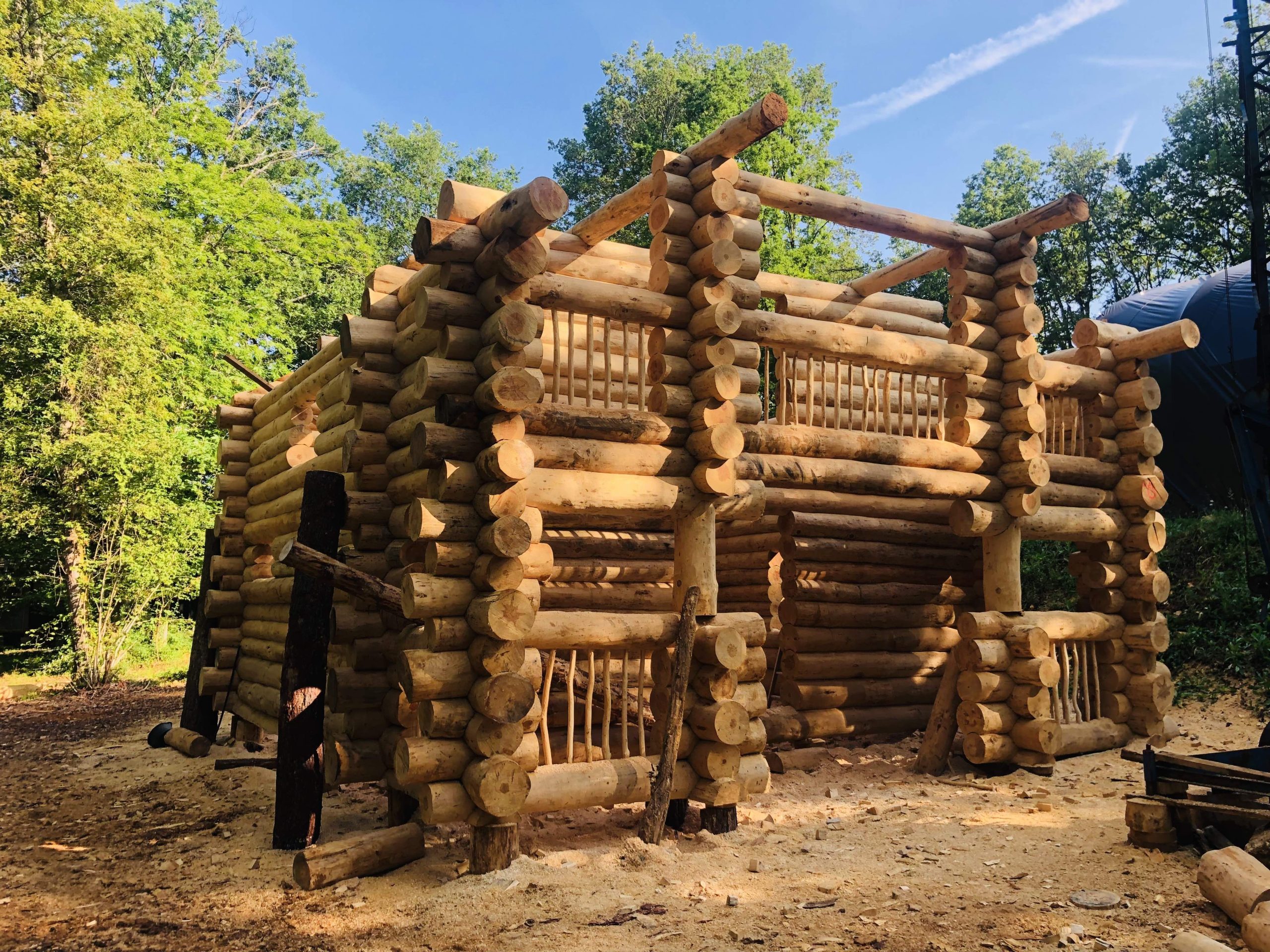 Une fuste est une habitation construite en troncs d’arbres bruts empilés, taillés et entrecroisés de manière à former un mur étanche et solide. Chaque rondin est taillé à la main de manière à épouser parfaitement la forme irrégulière de celui qui le précède.